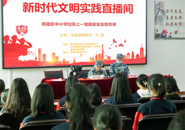 ▲ 全国道德模范马旭为中小学生上国家安全教育课