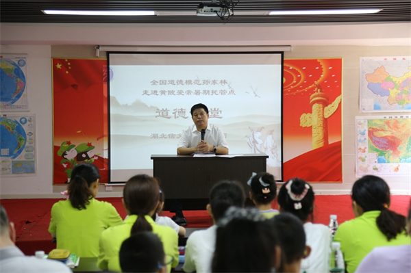 ▲ 全国道德模范孙东林走进黄陂暑期托管班为青少年开设“道德讲堂”