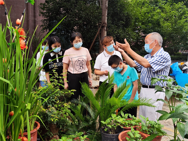 ▲ 社区志愿者为居民义务讲解绿植相关知识