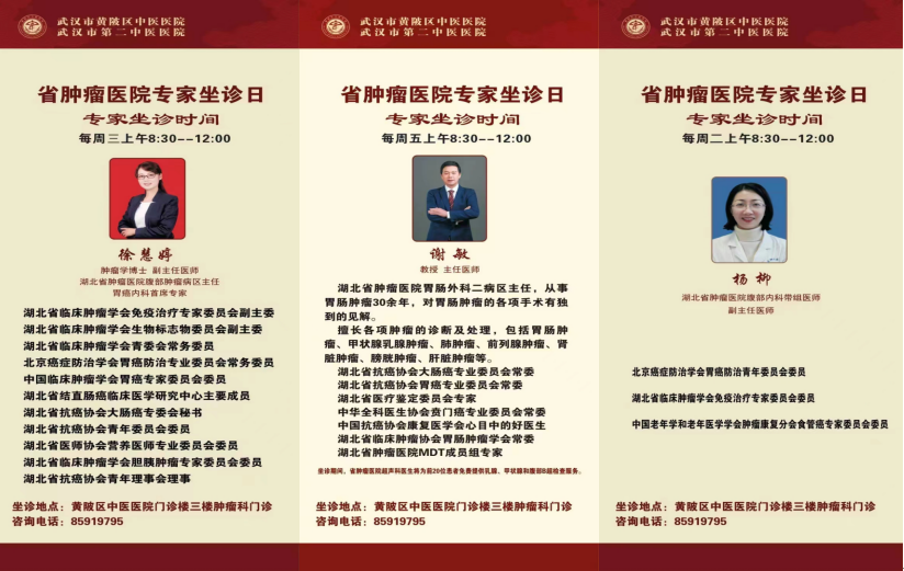 门诊地点:黄陂区中医医院门诊3楼肿瘤科门诊