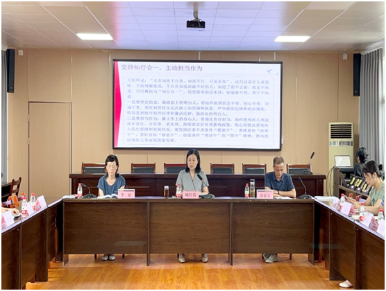 区残联主要负责人采取理论与工作实际相结合方式,以“培养纪律自觉,推动残疾人事业高质量发展”为主题,为大家上了一堂生动的廉政党课。要求全区残联系统党员干部要持续深入学习贯彻党的二十大精神和习近平总书记关于纪律建设的重要论述,把纪律建设摆在更加突出位置,以纪律建设的新成效推动全面从严治党向纵深发展,通过系列理论知识学习,不断增强纪律观念,守住廉洁底线,常怀敬畏之心,坚持知行合一,主动担当作为。始终把残疾人利益放在首位,办实事,求实效,持续落实好各项惠残政策,用心用情改善残疾人民生保障和发展现状。进一步发扬不讲条件“愿意干”,勇挑重担“抢着干”,紧盯目标“擂着干”,创造条件“想法干”的“四干”精神,为推动黄陂高质量发展贡献残联力量。