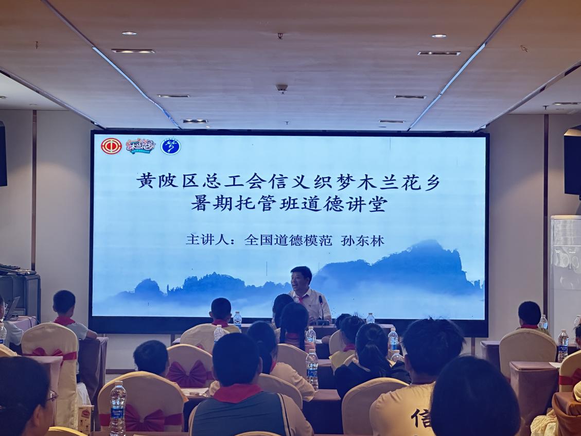 8月1日,黄陂区总工会携手信义兄弟公益帮扶基金会在木兰花乡举办爱心托管班道德讲堂公益活动。武汉市总工会、黄陂区总工会、武汉木兰花乡旅游发展有限公司相关负责人及托管班的学生们参加了活动。