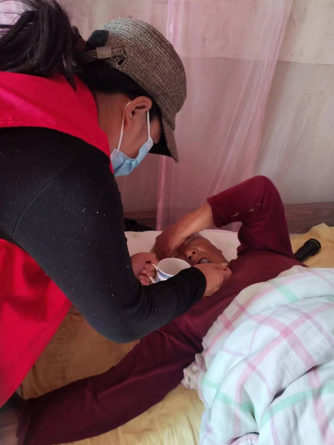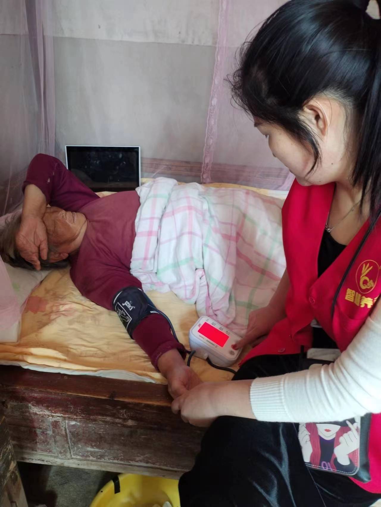 互助养老员给老人进行了血压测量,此时老人高压已经达到204。村医到达后给老人喂服了降压药,经过半小时的休息老人的高压降到了159,老人身体感觉明显好转。老人拉着互助养老员的手不肯松开,助老员告诉老人:胡婆婆您放心休息,您家属回来之前,我会一直陪着您。