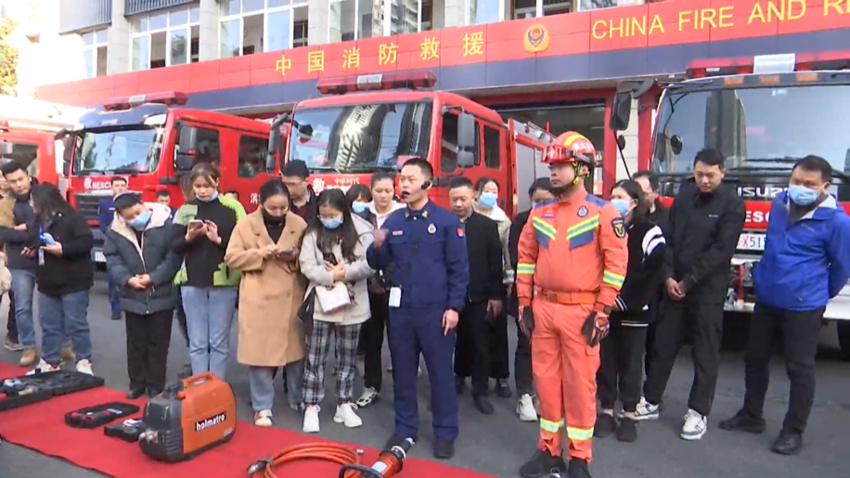 活动中,黄陂区消防救援大队消防员详细介绍了各类消防救援工具和车辆的使用场景及使用方式。
