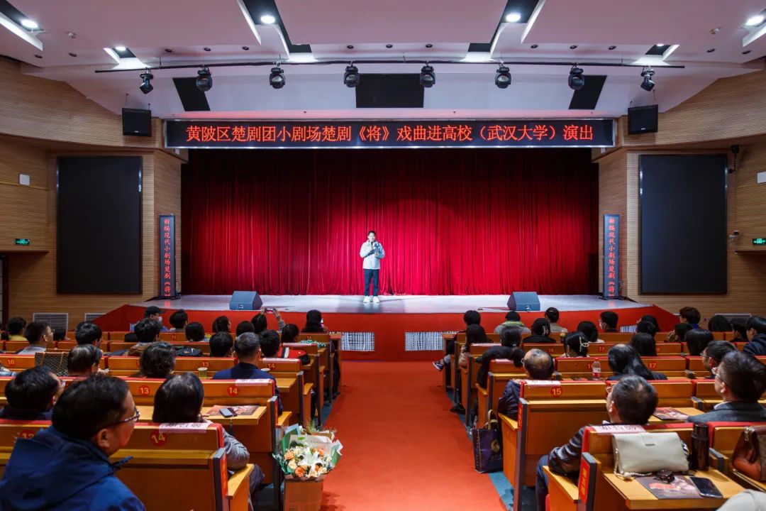 11月23日晚,由黄陂区文化和旅游局指导、区楚剧团出品的现代小剧场楚剧《将》在武汉大学人文馆主厅新鲜上演。