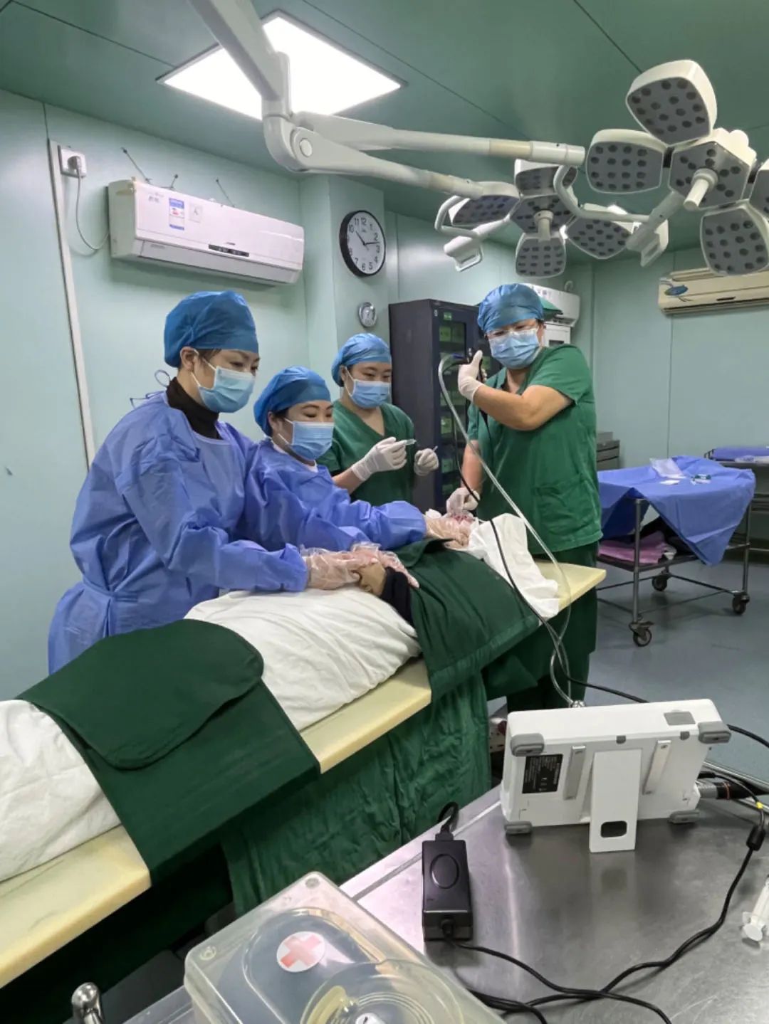 在与孩子父母充分沟通病情后,盘龙城院区儿科与院本部新生儿与儿童重症科共同合作,在局部麻醉下行支气管镜肺泡灌洗术,清除患儿难以咳出的呼吸道分泌物,改善患儿通气。手术持续约10分钟,过程顺利。目前患儿病情平稳,正在接受中西医结合治疗。