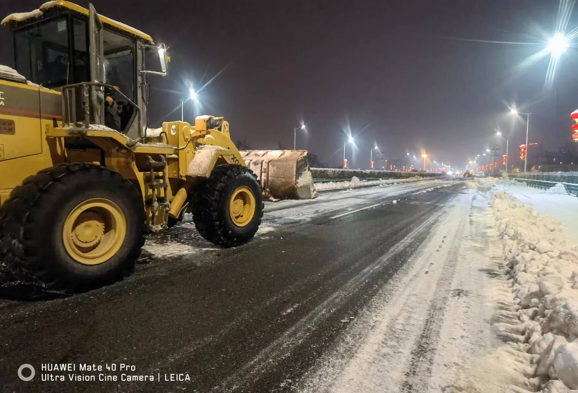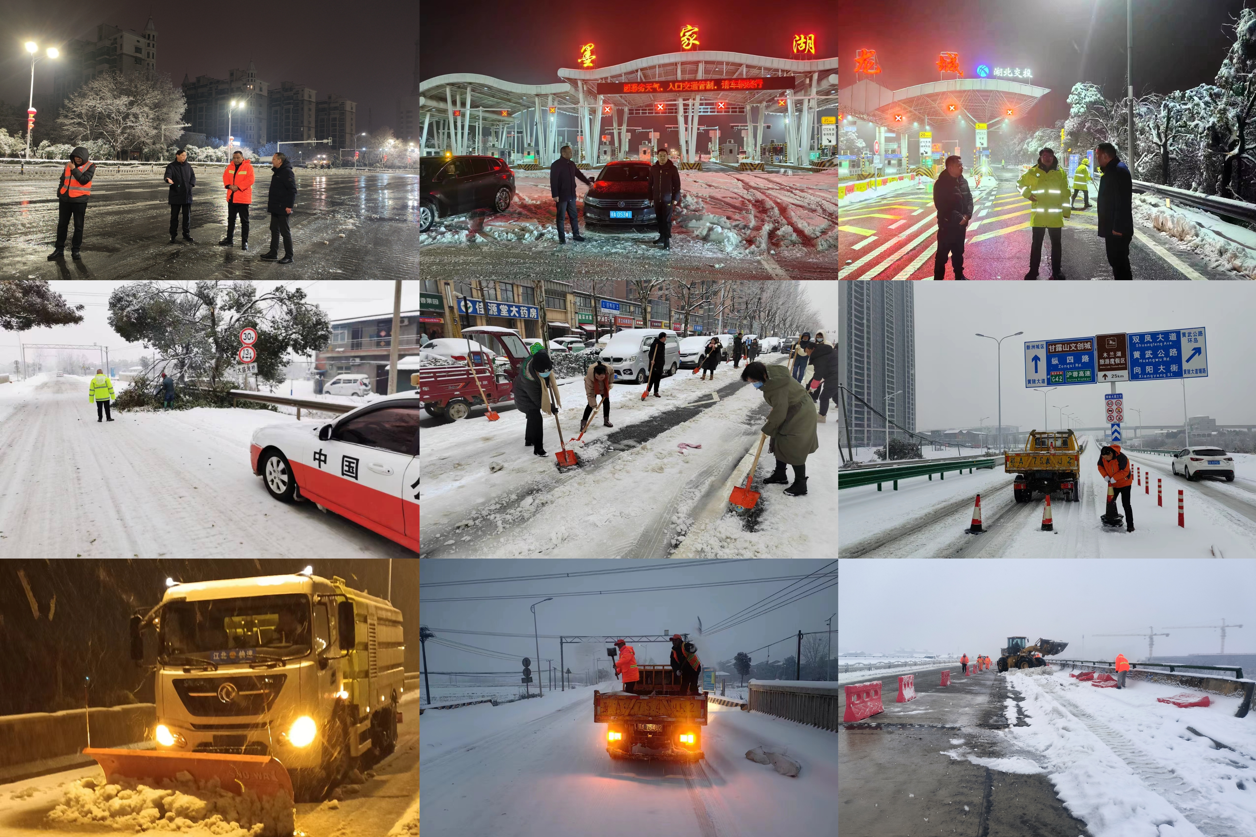 3日凌晨,暴雪“如期”袭击了武汉地区,黄陂全境裹上了一片厚厚的银装,境内所有道路积雪均达5—15CM左右,黄陂北部公路雪冻更为严重,车辆滞留,公交停运,车辆的出行受到了严重影响。风雪为令,“民有所需,我有所为”,黄陂公路人踏着夜色再次出征,G318川龙、G316黄孝、S108荷土、S116姚姚、S115祁泡、S334长塔、S117火塔等重灾干道随处可见大型机械铲雪、人工融冰场景,黄陂公路人融冻除冰的战斗场面温暖了无数行者和公路沿线群众,那一个个在寒天夜冻中移动的橘红色,让行驶在路上的人们感觉寒冬也是那么温暖亮堂。