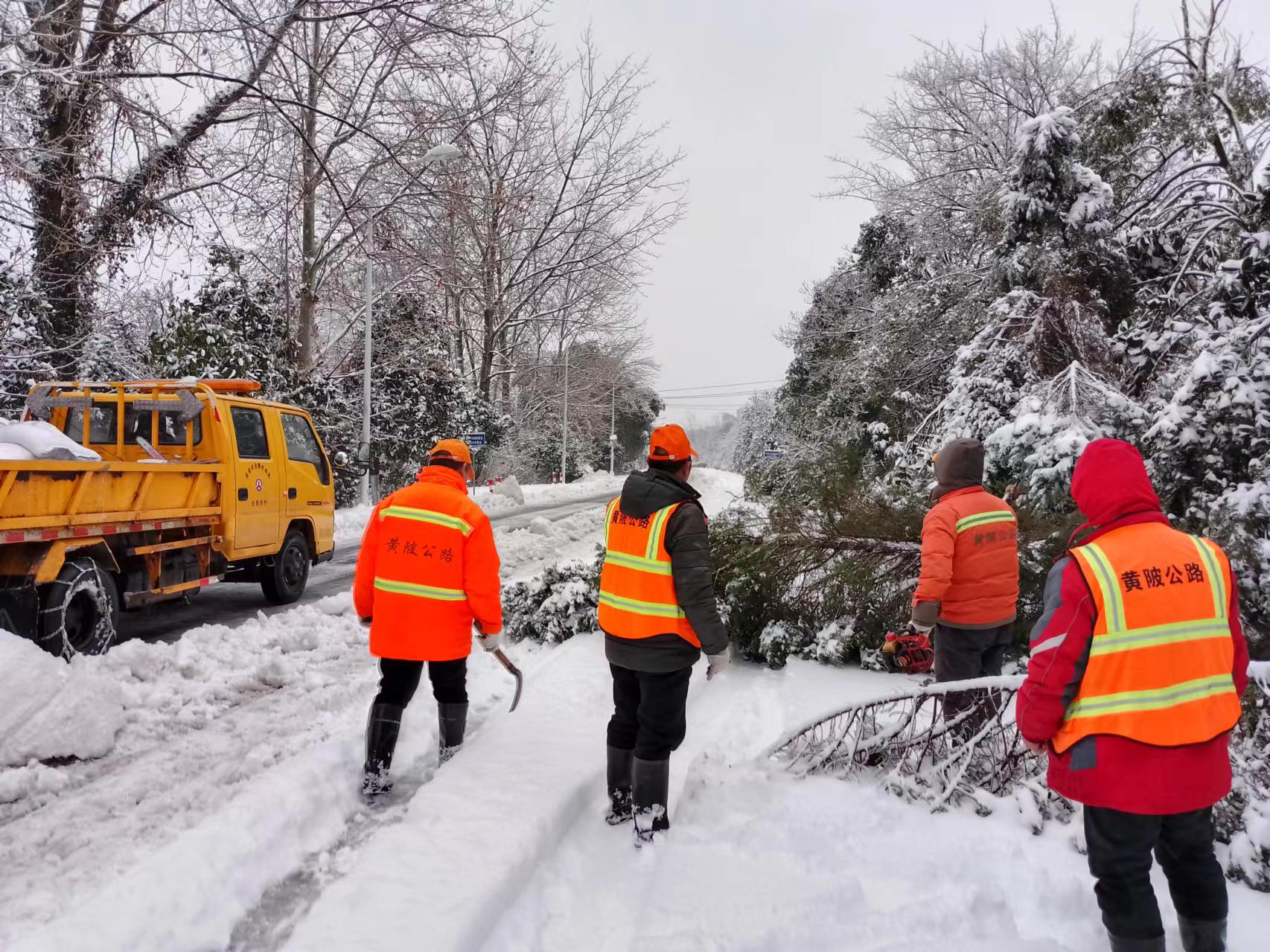 2月2日,武汉地区普降冻雨+大暴雪,位于江北的黄陂冰雪灾害尤为严重。黄陂公路局在冻雨+暴雪气象预警后,立即启