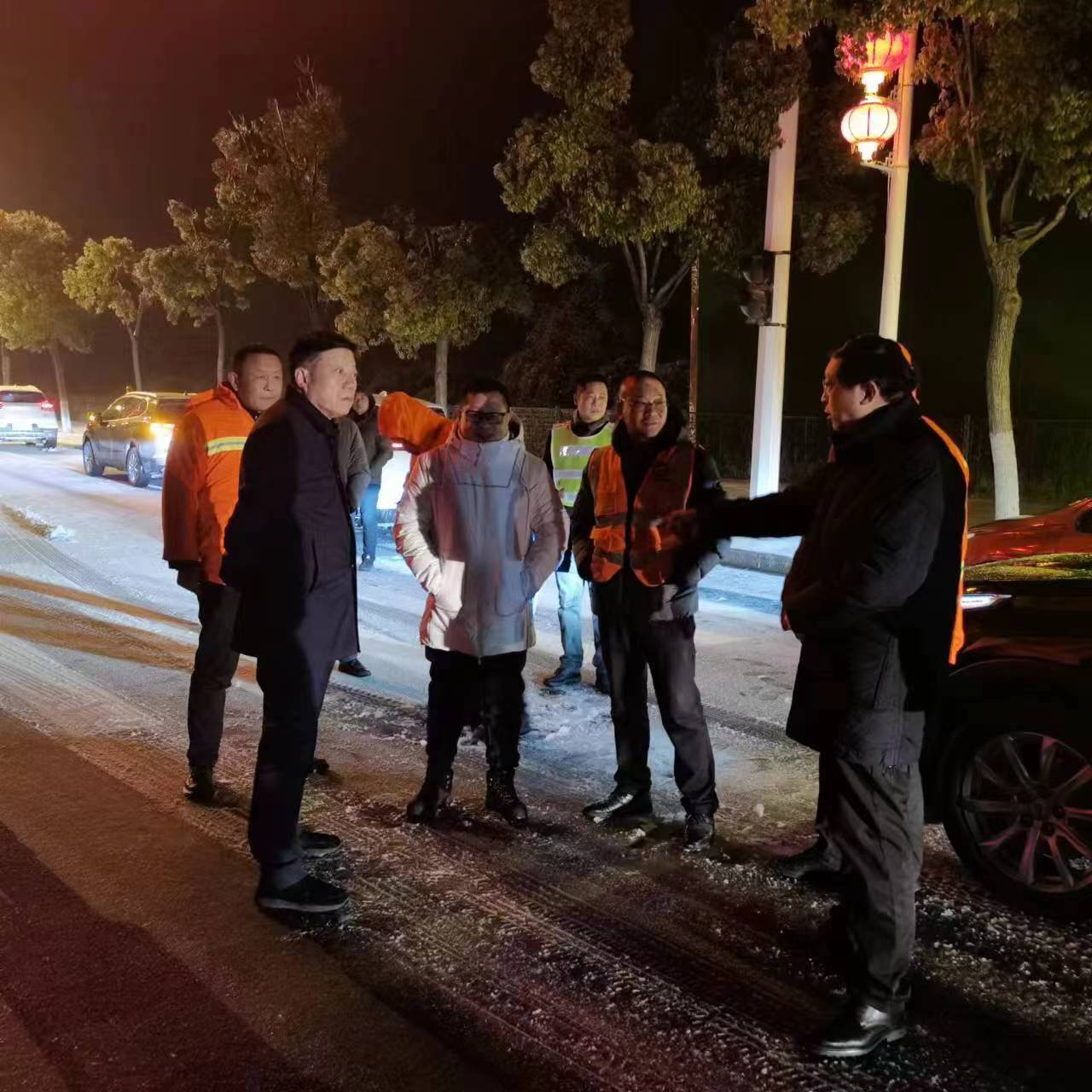 ▲区领导深夜现场调度岱黄除冰保通工作
