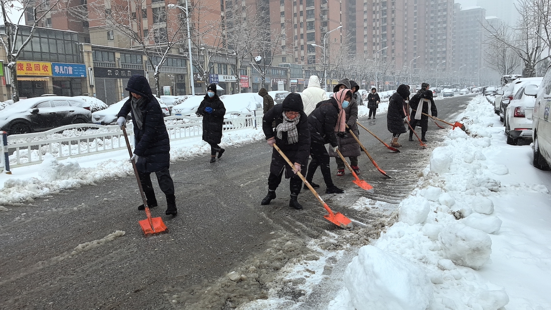 ▲机关干部参与城区百秀街北段除雪