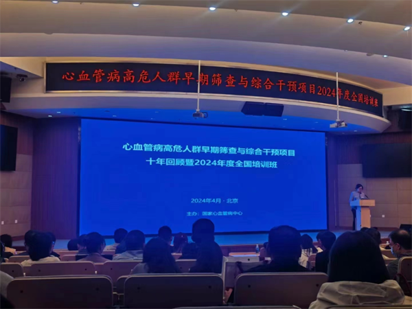 2024年4月19日-20日,心血管病高危人群早期筛查与综合干预项目(以下简称“心血管高危筛查项目”)十年回顾暨2024年度全国培训班,在北京国家心血管病中心隆重举行。中国工程院院士胡盛寿、国家卫生健康委员会医疗应急司司长郭燕红、国家心血管病中心副主任李志远、中央广播电视总台主任播音员董丽萍、中国医学科学院阜外医院健康教育中心主任杨进刚等领导、专家出席此次会议。