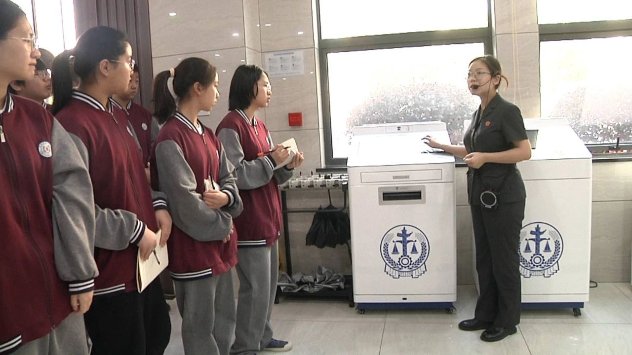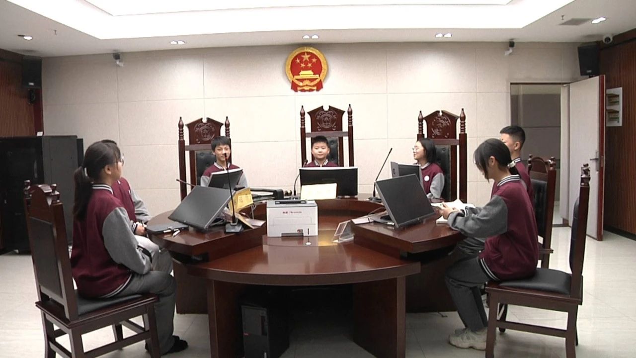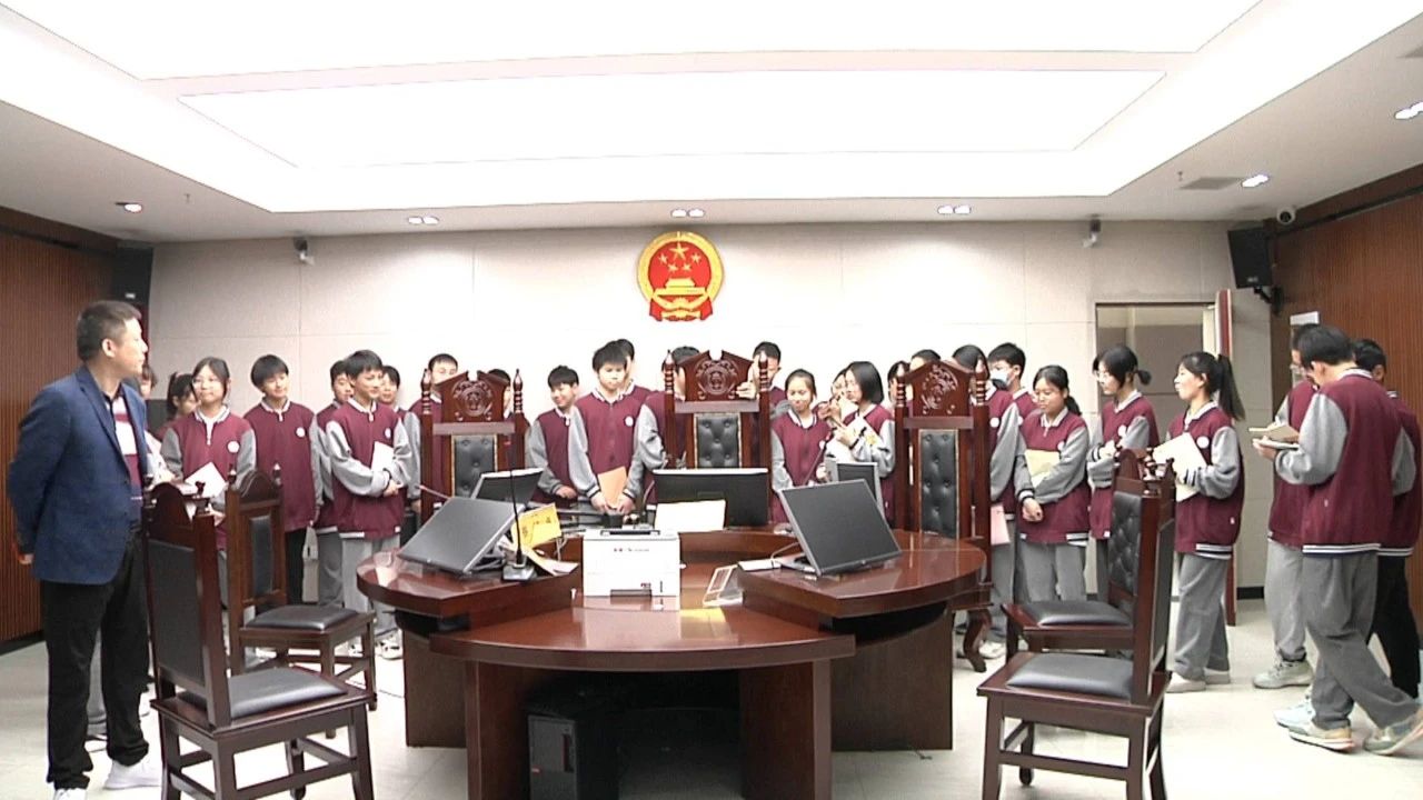 庭审是最生动的法治课堂,案件是最鲜活的普法教材。在圆桌审判庭,讲解员向大家普及了法徽、法槌、法袍的用途和意义,同学们拿起法槌,模拟庭审活动,沉浸式体验法律的公平公正。随后在干警的引导下,大家有序进入正在诉讼的审判庭,在真实的诉讼案件中感受法律的庄重威严,少年们的心中被种下了一颗颗法治的种子。学生代表朱婧萱说:“这次的庭审给我留下了深刻印象,我们要学会用法律思维解决问题,今后我要认真学习法律、践行法律,做遵纪守法的好公民。”