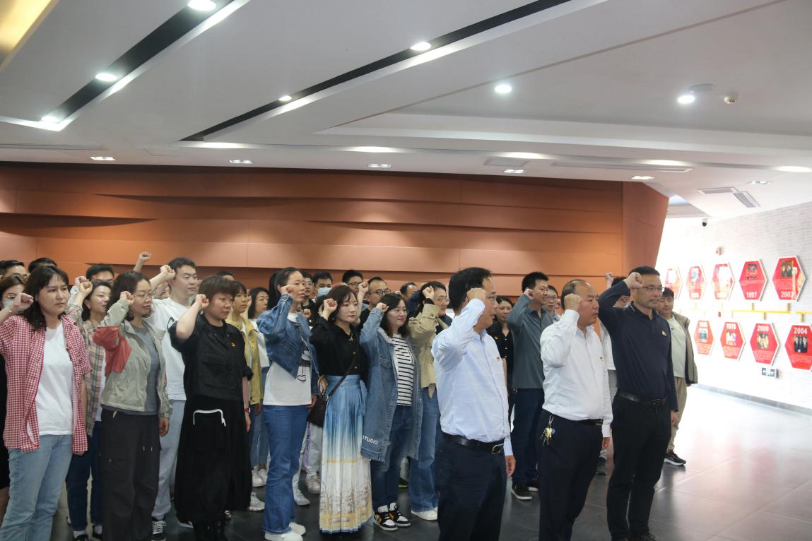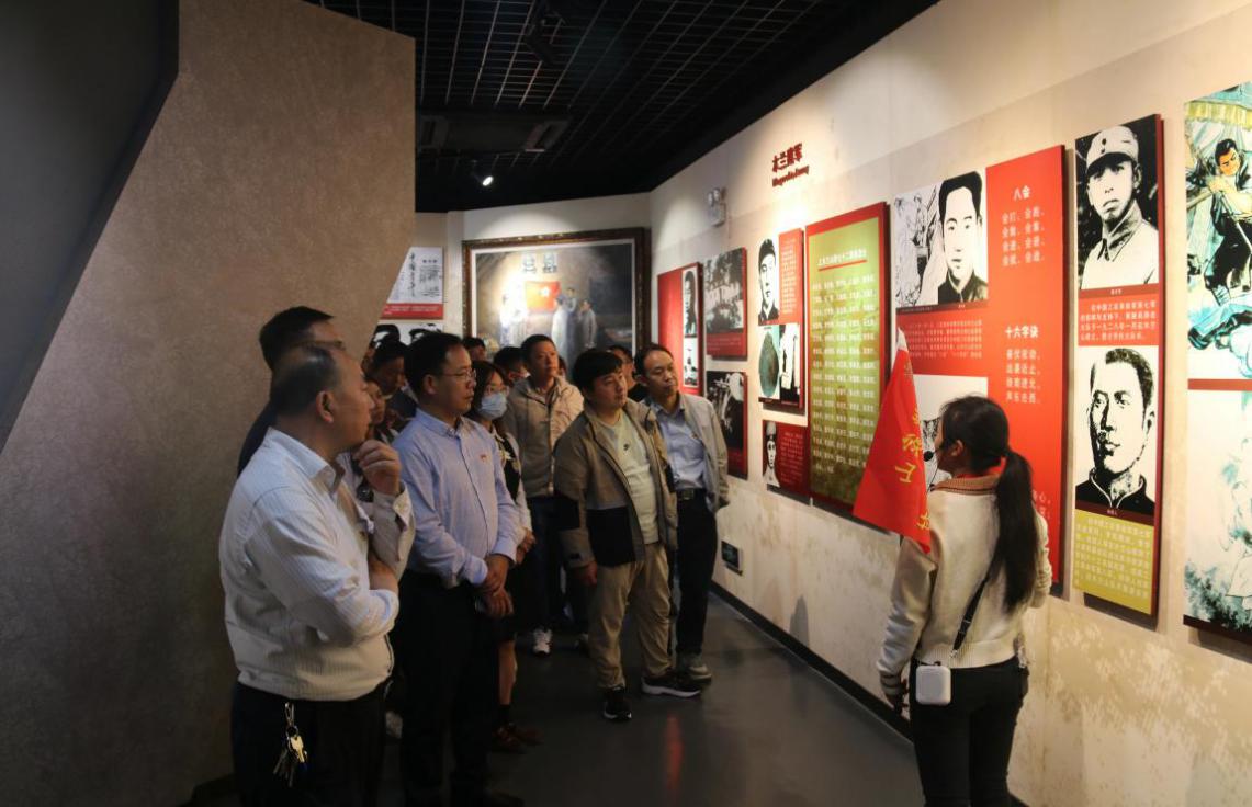 活动当天,两个党支部全体党员来到黄陂区姚家山红色教育基地参观学习。参观中,全体党员在武汉市中心医院检验支部书记卢忠心的带领下,面对鲜红的党旗,高举右拳,肃穆站立,重温入党誓词。