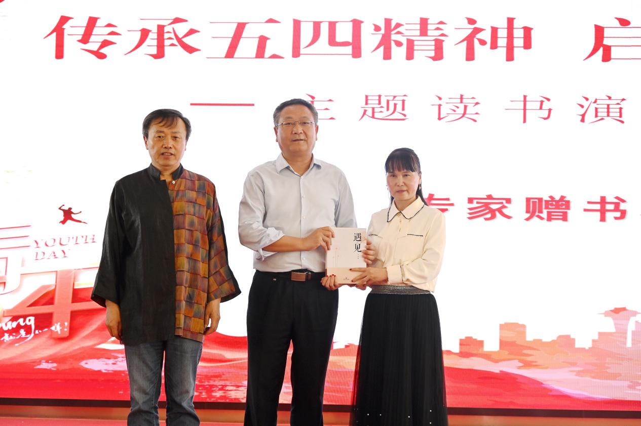 演讲结束后,裴高才主席对选手们的表现进行了点评,传授了“博览群书、冥思苦想、明道立德”的读书经验,并向院长彭朝安赠送了1919年武汉五四运动的风云人物蔡以忱烈士传记《“铸剑”先驱蔡以忱》一书。