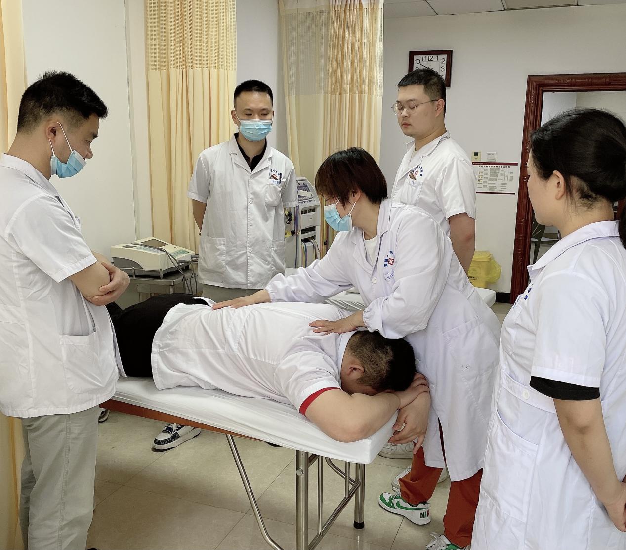 5月7日下午,针灸康复门诊组织了一场科内学习,肖嫣带领医师刘雅兰、汤路和中医治疗师陈洋、潘宏凯、张涛、张雅芸等门诊团队一起学习巩固“小儿推拿治疗近视”理论知识,讲授探讨操作手法,并纷纷亲身体验感受,他们结合临床经验,研习了一套专属手法,为接下来大力开展儿童青少年近视防治积极做准备。