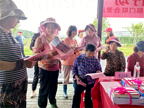 5月21日,正值第四个“民法典宣传月”,为贯彻落实习近平总书记“法治是最好的营商环境”重要精神,黄陂区财政局党组成员、总会计师陈秀忠带领法规调研科、基层科、农业科一行,来到和美乡村试点试验所在地姚集街沿河村、俊豪家康公司等企业,开展“‘典’亮乡村 法暖企业”市区街三级财政部门联合普法。武汉市财政局法规税政处处长徐静、二级调研员宋斌文应邀参加,姚集街人大工委主任王恒元、街财政所、村委会、企业代表参加活动。普法活动主题突出,受到广大群众热情欢迎,共发放法律宣传书籍及折页2300余份,宣传品600余份。