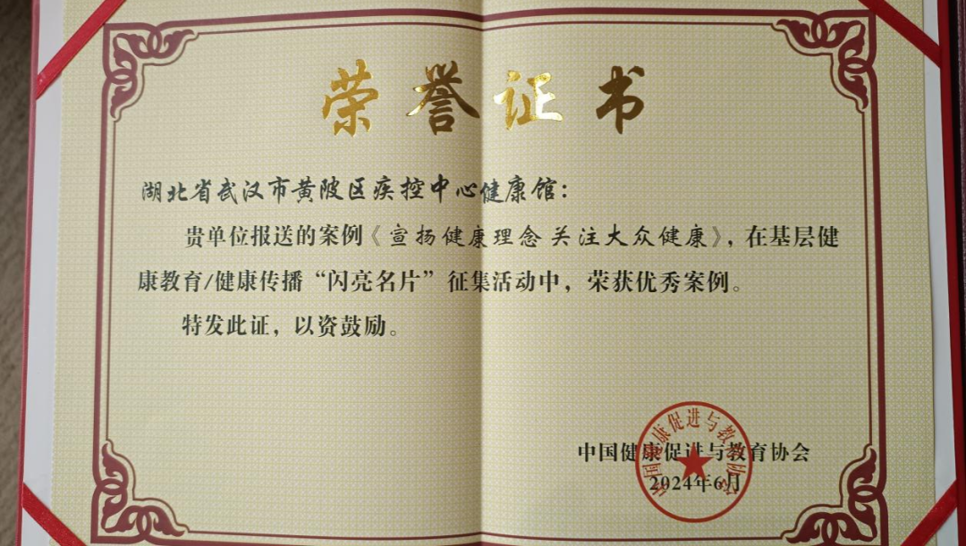 大会发布了《提升全民健康素养倡议书》,总结了中国健康促进与教育协会成立40年来的工作情况和取得的成效,同时对基层健康教育/健康传播“闪亮名片”案例征集活动的30个优秀案例进行了表彰。黄陂区疾控中心报送的以健康馆为载体的案例《宣扬健康理念,关注大众健康》,在全国众多案例中脱颖而出,荣获优秀案例。