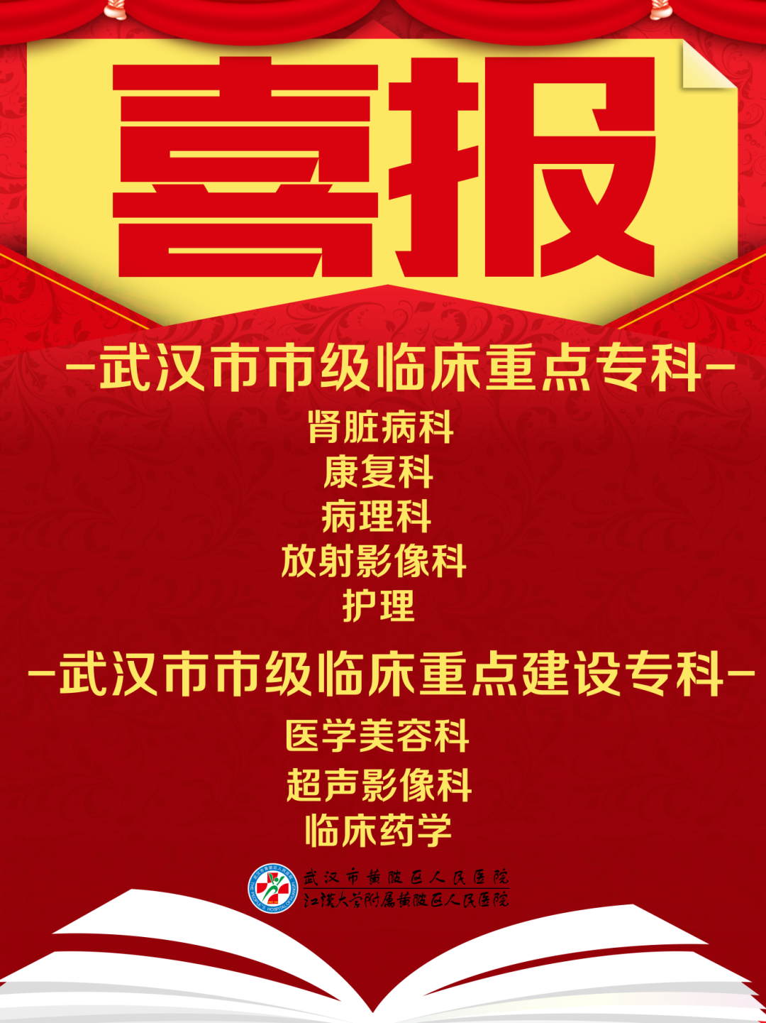 近日,从《武汉市卫生健康委员会关于公布2024年度武汉市临床重点专科名单的通知》获悉,黄陂区人民医院肾脏病科、康复科、病理科、放射影像科、护理等5个学科成功获评武汉市市级临床重点专科,医学美容科、超声影像科、临床药学等3个学科成功获评武汉市市级临床重点建设专科。