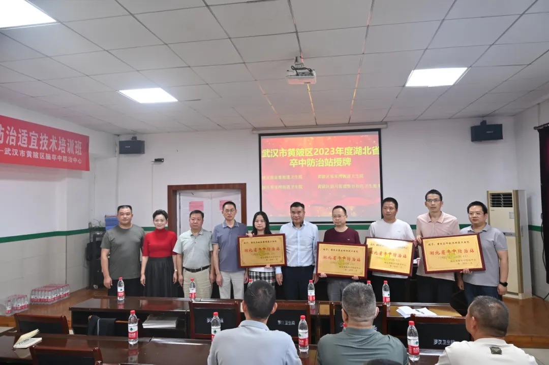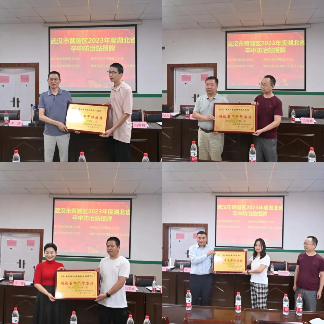会议第二部分,2023年度黄陂区基层卒中防治站授牌。黄陂区基层卒中防治站建成4家(第二批),分别是:黄陂区姚家集街道卫生院、黄陂区祁家湾街道卫生院、黄陂区蔡家榨街道卫生院、黄陂区前川街道鲁台社区卫生服务中心,会上对以上四家防治站进行授牌。