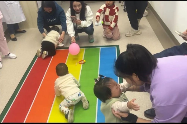 活动还设置了宝宝爬行比赛等亲子互动环节,在医护人员的指导下,家长们和宝宝一起进行了温馨的亲子游戏,增进了亲子之间的感情。