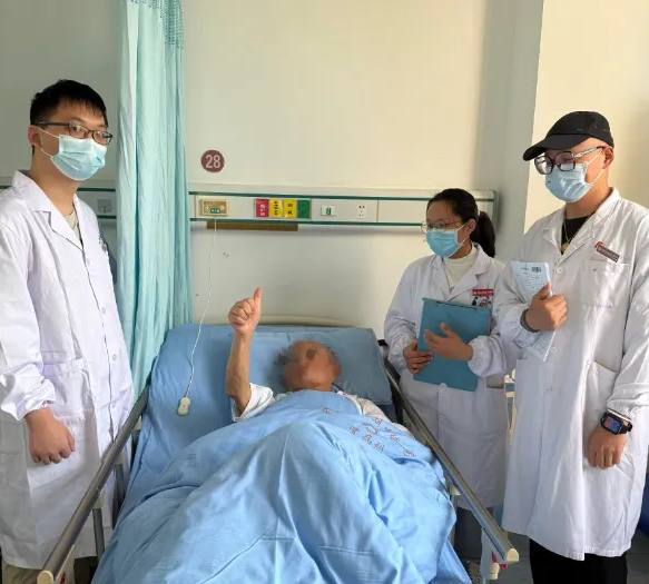 通过一段时间的针刺运动、智能上下肢训练、关节松动训练等床边康复治疗,李爹爹肢体功能逐渐恢复,活动能力明显改善,生活自理能力明显提高,可以竖起大拇指给医护人员点赞。