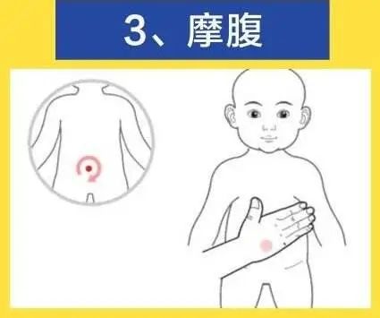 顺摩腹:用手掌或四指螺纹面轻贴小儿腹部,以肚脐为中心做顺时针环形运动,每次3—5分钟,可健脾和胃、理气消食。