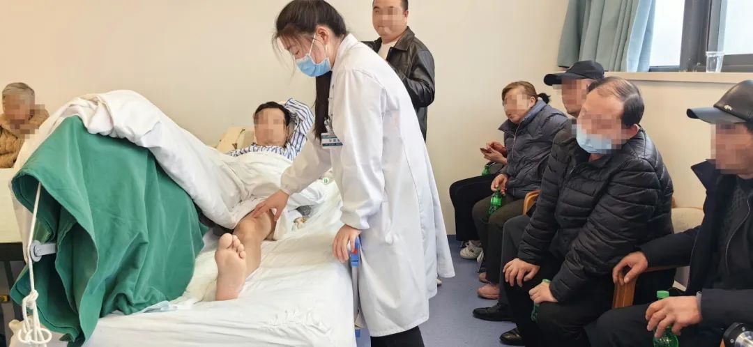 活动中,科主任系统梳理了骨科创伤病区收治病种例数较多的四肢骨折、软组织损伤、骨科康复运动等常见骨病的发病机制与治疗方案,并结合临床案例,用通俗易懂的语言让患者及家属对疾病有了更清晰的认知;康复师针对每位患者的个体情况,手把手指导患者练习;护士长结合多年临床经验,解答了长期卧床患者的皮肤护理、心理疏导等问题;专科护士针对围术期疼痛管理、饮食宣教等护理难点进行指导,帮助家属掌握居家照护技巧。