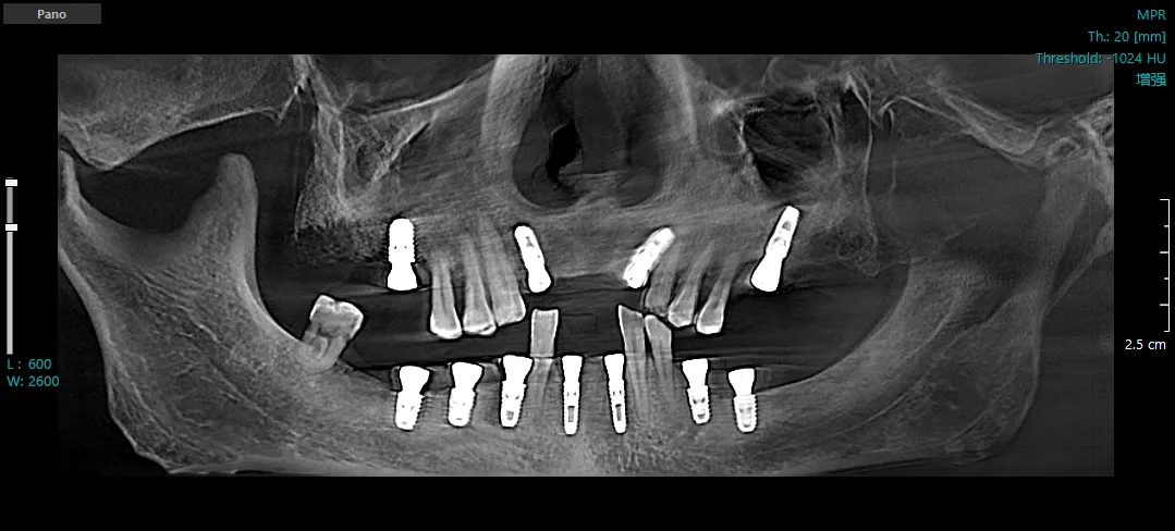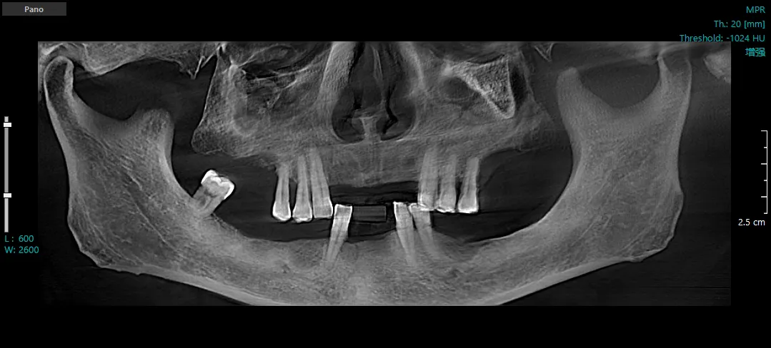 65岁的张先生,因全口缺牙多年,日常咀嚼功能严重受影响,日前到黄陂区中医医院口腔科就诊,口腔科主任乐涛检查后发现,张先生口腔基础条件差,牙槽骨吸收严重,这给牙齿修复带来了困难。乐涛凭借着丰富经验和精准操作,通过口腔颌面锥形束CT三维重建技术(CBCT)和口腔3D扫描技术,精准获取了患者口腔的三维模型,掌握了患者口腔血管、神经位置及牙槽骨的吸收情况,并运用种植导板定位技术,成功为张先生种植了11颗前牙,种植成功的当天患者即可正常咀嚼食物。