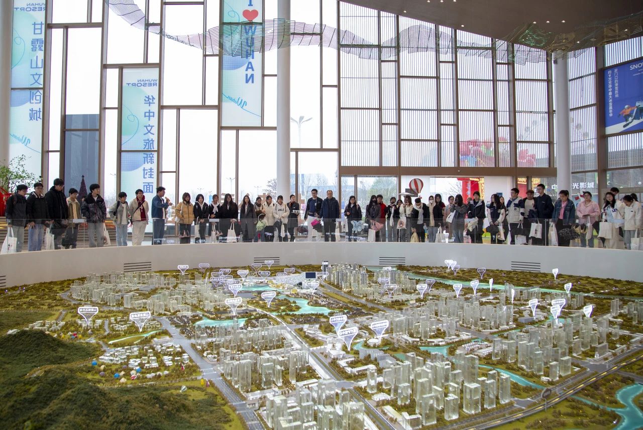 甘露山文创城作为华中地区首个超大规模的“冰雪+”文旅综合体,以独树一帜的“冰雪+文旅”生态模式及全产业链布局,瞬间吸引学子目光。企业相关负责人详细介绍了规划建设及未来愿景,为大家展示了一个融合冰雪综合体、宋式水镇商街、民宿酒店集群等多元业态的 “一站式”度假胜地。