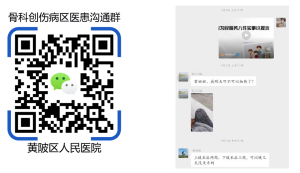 扫码加入“骨科创伤病区医患沟通群”,恭喜你成功进入康复“快乐星球”!在这里,病友们可以分享康复经验,互相鼓励打气;医护人员会定期分享康复小知识、锻炼小技巧;你还能随时提问,和我们“唠唠嗑”。有了这个大家庭,康复路上再也不是一个人孤军奋战!