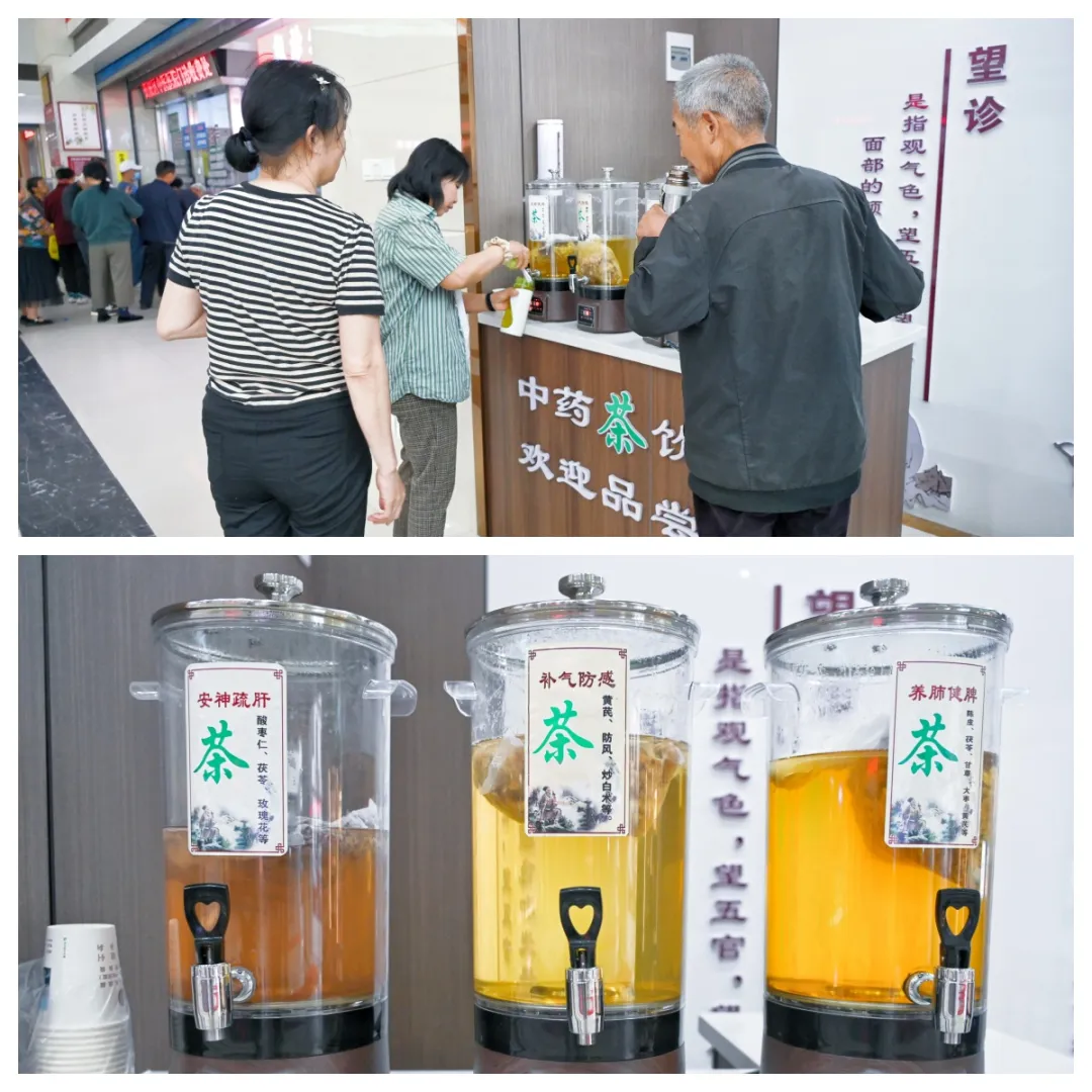 在中式茶歇区,安神疏肝茶、补气防感茶、养肺健脾茶等经典名方中药养生茶饮散发着淡淡清香,免费供候诊患者和家属品尝。这一方小小的茶席,传递着中医“药食同源”的养生理念。让人们在品味茶香的同时,感受到中医药对健康的关怀与呵护。
