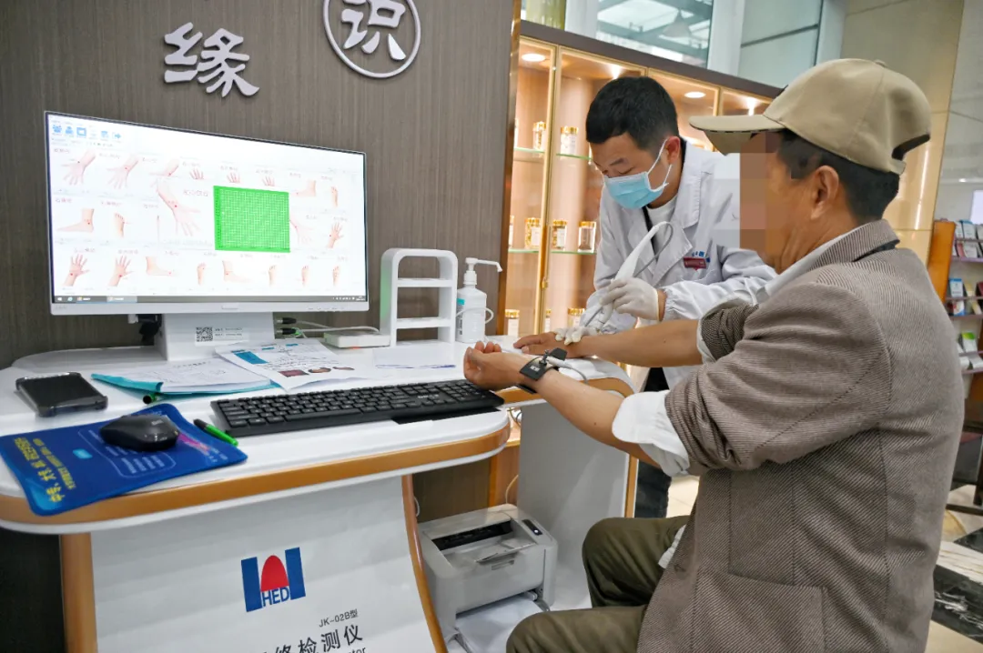 中医文化体验区一角,融合了传统脉学与现代科技的经络检测仪吸引了不少就诊患者和家属。该仪器运用现代生物电感应技术,结合中医传统理论,能快速科学评估人体十二经络的气血状态,以科技手段将“气血”“经络”直观呈现。医院更安排资深中医师坐诊,根据检测结果,现场辨识中医体质,给予中医健康指导,为往来百姓开启了一扇洞察自身健康状况的“察外知内”之窗。