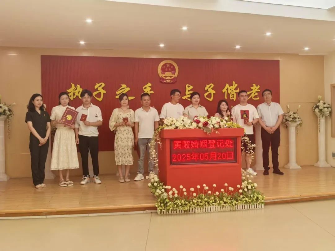 凭借“我爱你”的谐音密码,5月20日成为镌刻爱情的专属纪念日,这一天,黄陂区婚姻登记处化身幸福“制造工厂”,迎来了领证小高峰,见证了一对对新人奔赴人生重要时刻,为爱情盖上专属“幸福印章”。