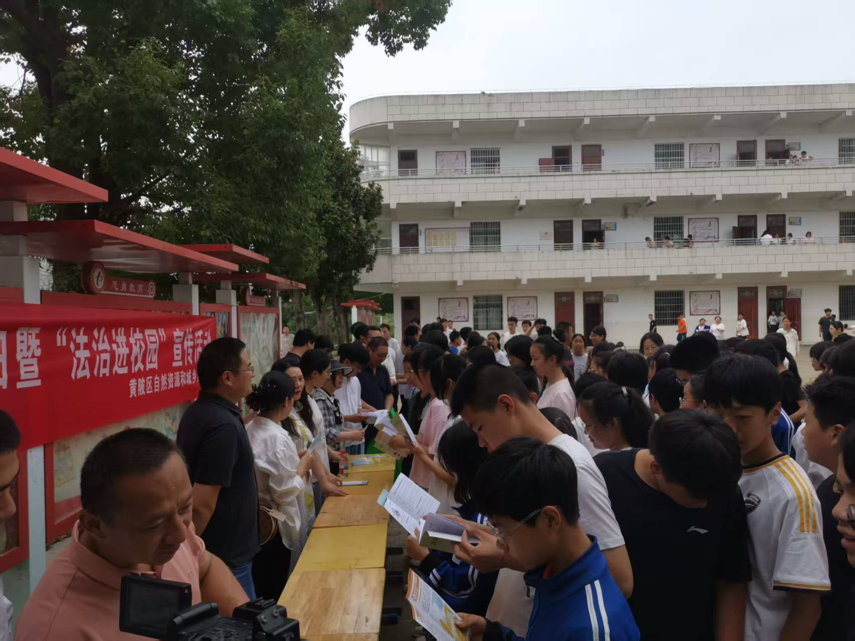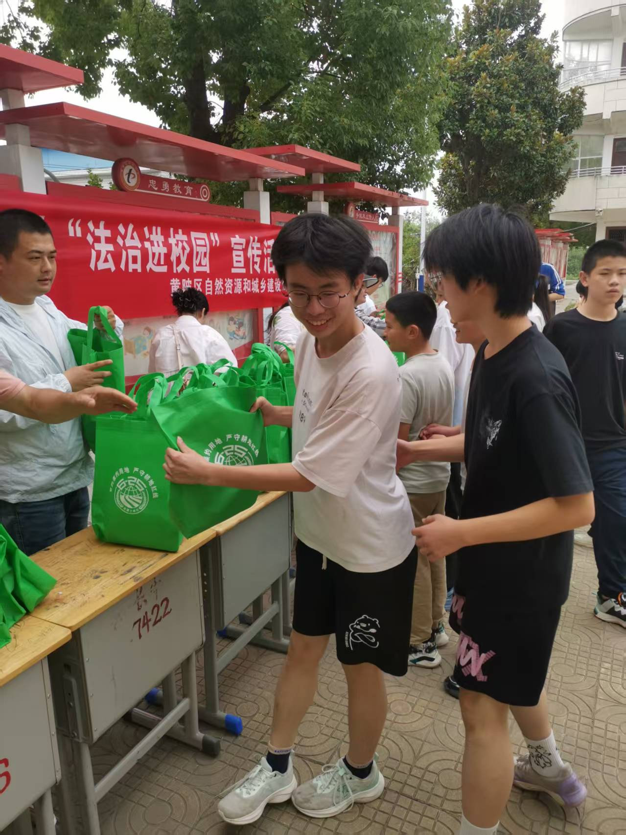 活动现场悬挂主题横幅,设置宣传展台,来自区自然资源和城乡建设局的10余名宣传工作人员利用课间休息时间,向师生集中宣讲土地法、城乡建设法、民法典以及农村建房“八不准”等土地法律法规知识,发放土地法规宣传手册,倡导大家努力践行“绿水青山就是金山银山”理念,十分珍惜、合理利用土地,号召大家自觉增强共同保护耕地的责任感和使命感,增进保护耕地的思想共识和行动自觉,为构建美丽黄陂贡献力量。