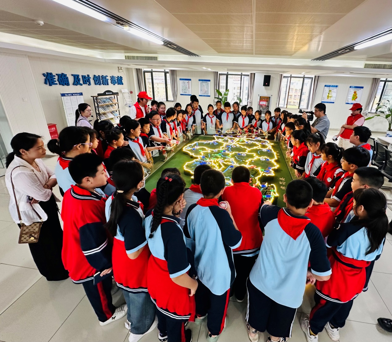 最后一站,研学队伍抵达黄陂区气象台,近距离体验了气象业务现代化的一系列成果——从高效精准的气象预警信息发布平台、智慧便民的旅游气象数据服务平台,到集成智能的“天气盒”终端设备,这些创新应用集中展现了气象科技在公共服务和防灾减灾领域的前沿实践与深度应用。竞猜环节把室内研学课堂推向高潮,学生们利用在线上线下学习的气象知识踊跃举手答题,“黄陂区最高气温是多少度?”、“雷雨来临时应该怎样防范?”这些问题既让学生们感受到气象科技的神奇力量,更让他们在答疑过程中感受到大自然的无穷奥秘。