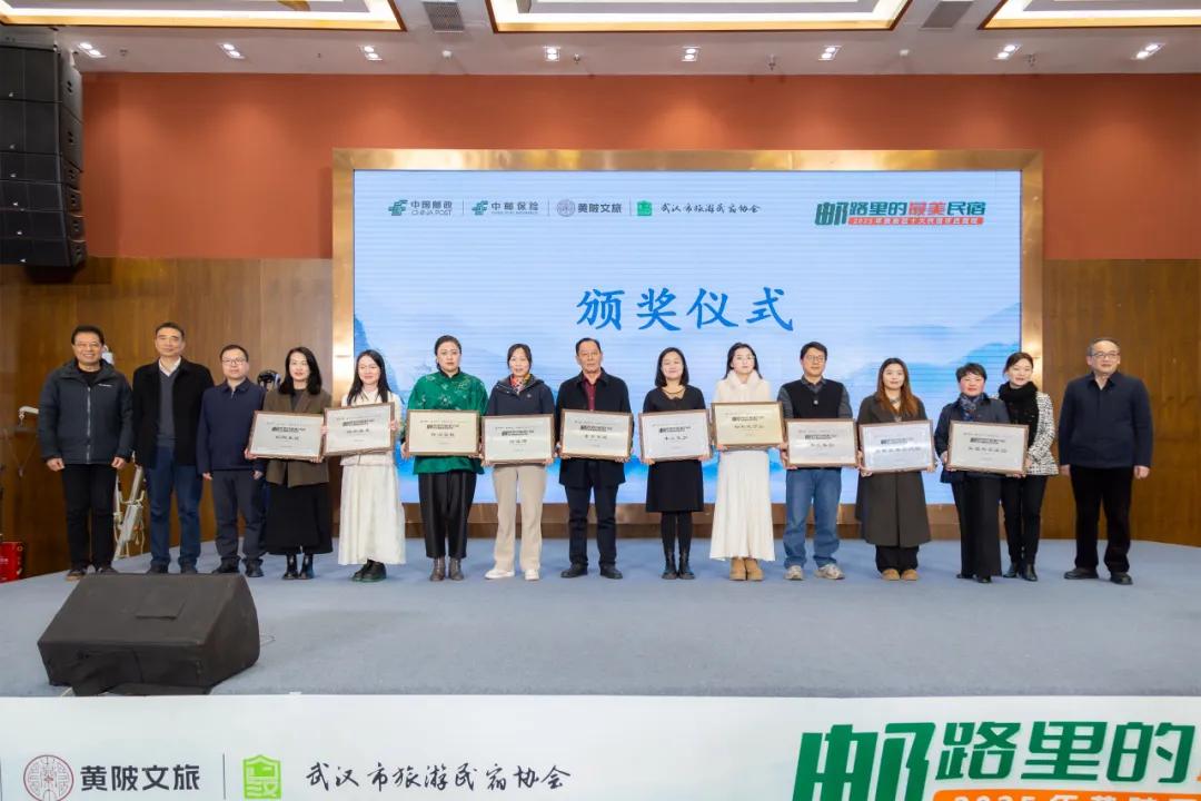 活动现场,民宿主理人、游客、行业专家及省市邮政公司、黄陂区政府相关代表等200余位嘉宾齐聚,共同见证这场“邮旅融合”盛会。经过资格审查、大众投票、专业评审等多轮严格筛选,斜阳耒筑、樾和林泉、璞闲客栈、凤溪湾、东宇禾筑、木兰花乡、木兰春归、裕和夫子山、石榴岛木兰屿墅、永福共享农庄等10家民宿获得“十佳民宿”。