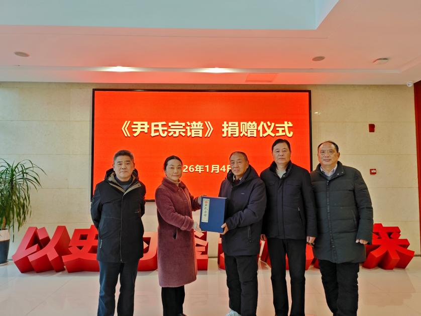 2026年1月4日,新年伊始,我区木兰乡《尹氏宗谱》编纂组代表将新近编纂完成的《尹氏宗谱》(黄陂区鼎五支系六修版)捐赠给区档案馆永久收藏。区档案馆举行了简朴的捐赠仪式。馆领导对编纂组对黄陂的史志档案工作的关心与支持表示感谢,并颁发了捐赠证书。