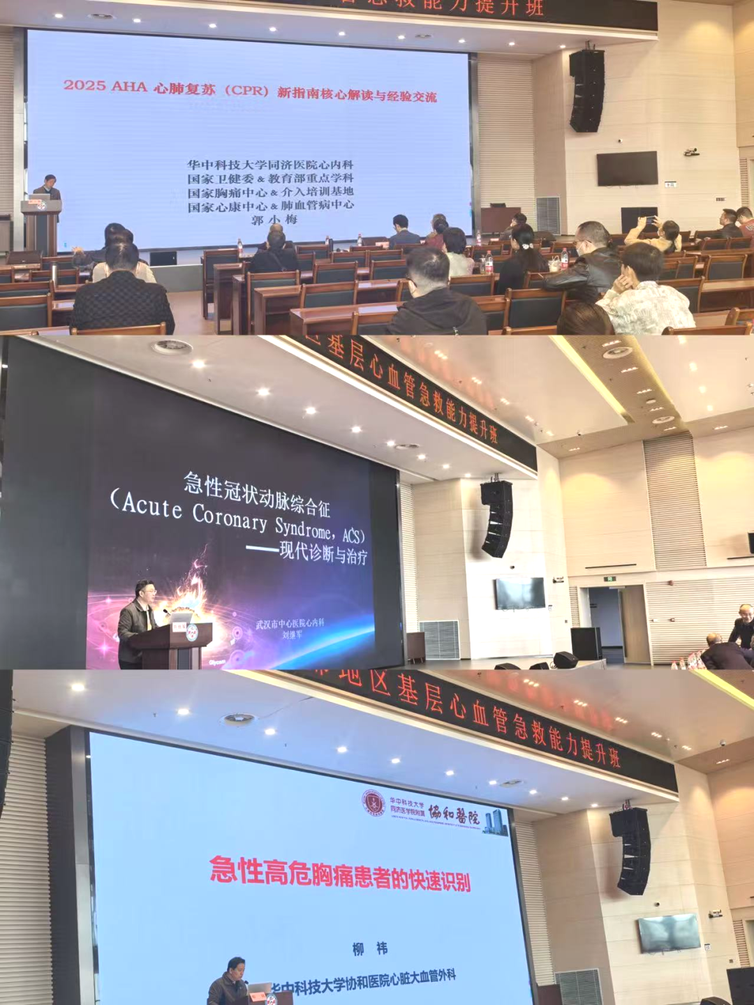 权威理论授课:邀请华中科技大学同济医学院附属同济医院郭小梅教授、武汉市中心医院刘继军教授、协和医院柳祎教授等权威专家,解读2025版CPR国际指南、急性冠脉综合征(ACS)诊疗进展及胸痛三联征快速识别策略,更新基层医务人员理论认知;