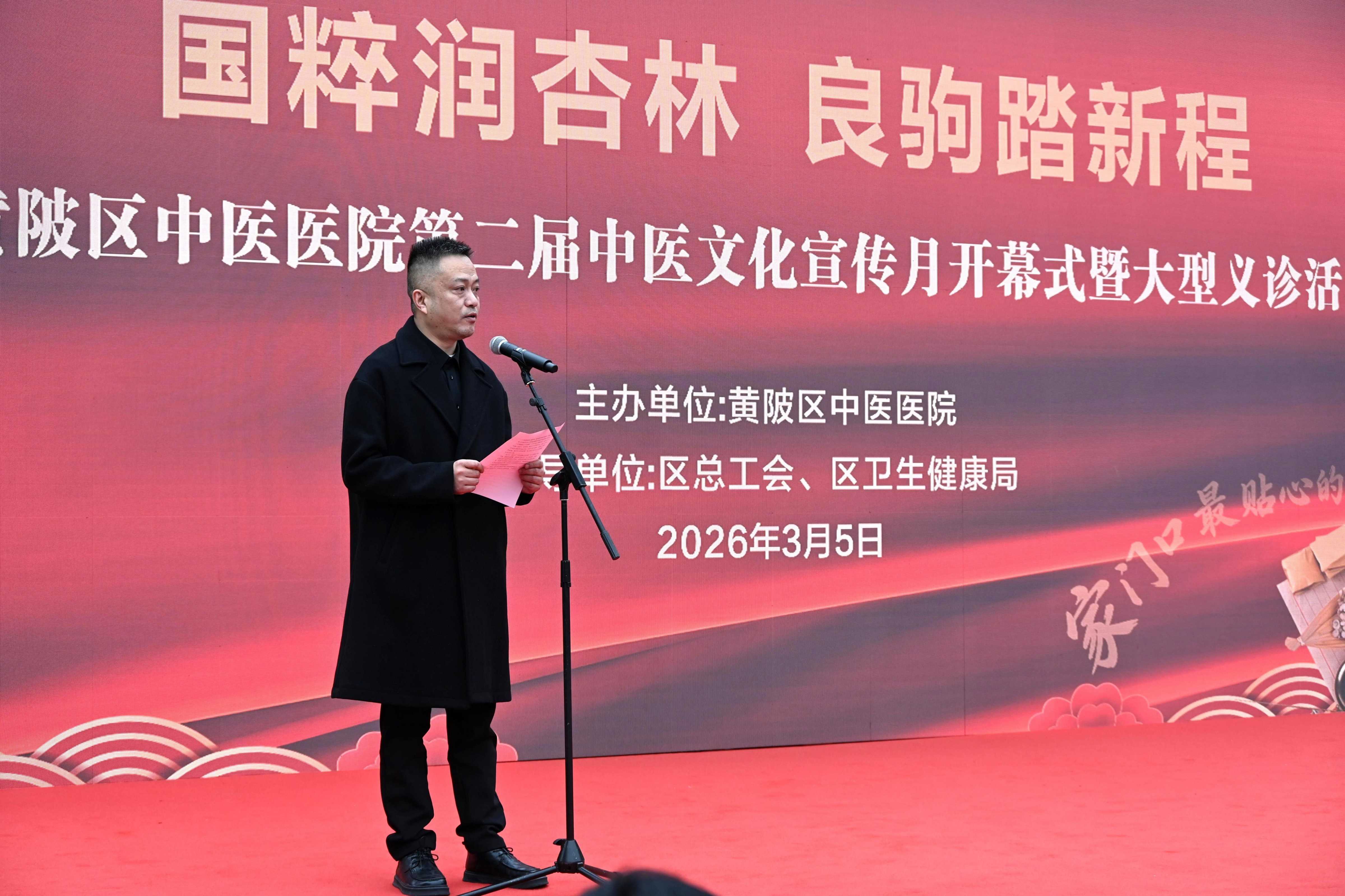 区卫健局党委副书记、副局长方元睿郑重宣布:“黄陂区中医医院2026年中医文化宣传月正式开幕!”这一刻,彩带飞舞,掌声雷动,标志着中医药文化传播与惠民服务的新征程正式开启。
