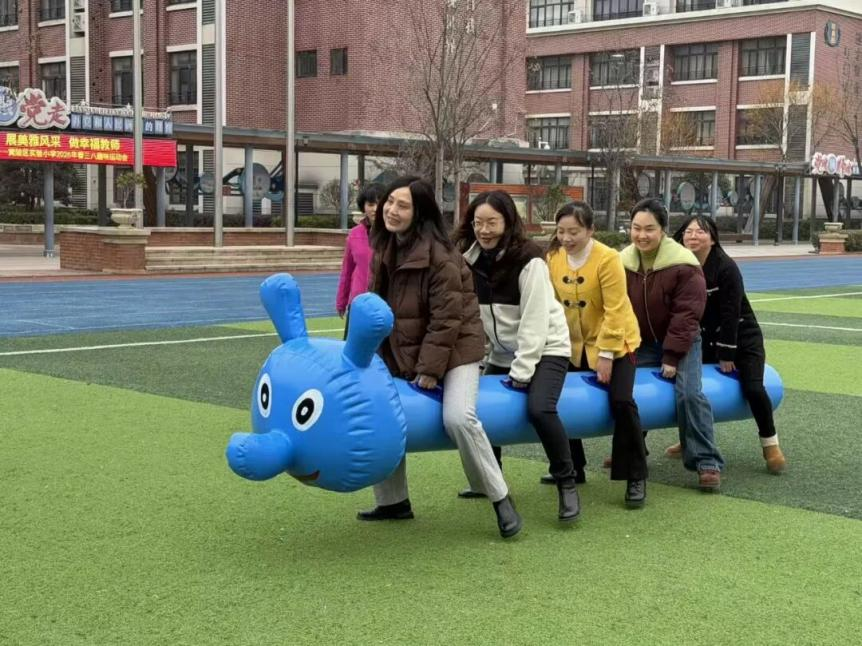 区实验小学工会组织全校女教师于大课间时间齐聚学校操场,参加庆“三八”妇女节趣味运动会,让全校教师在锻炼了身体的同时,凝聚力和归属感也在一阵阵笑声中得到加强。