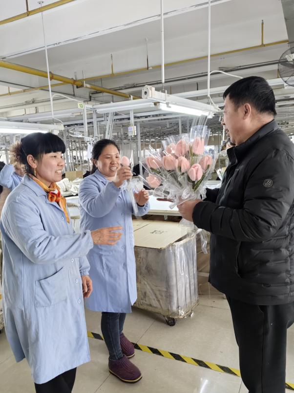 爱帝针纺公司工会精心组织开展三八妇女节“送你一朵小红花”活动,为各条生产线的女职工送上美好祝福,致以节日的诚挚问候和崇高敬意。