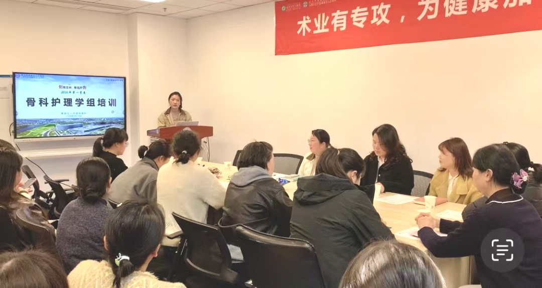 3月10日中午,黄陂区人民医院骨科专科护理学组2026年第一季度培训在住院部13楼中庭会议室如期举行。本次培训以“深耕骨科专科护理·传承赋能人才培养”为主题,吸引了全院各科室对骨科护理感兴趣的护理人员踊跃参加,全场座无虚席。培训由骨科专科组牵头护士长、创伤骨科熊君主持,外科片区科护士长王娟到场点评指导。