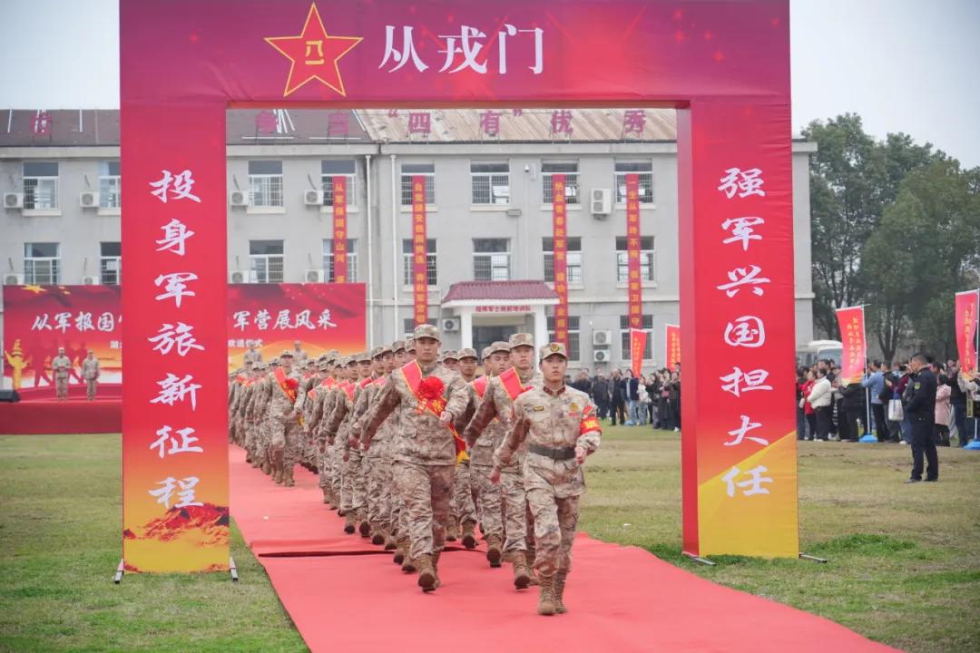随后,动人的一幕如期上演。全体新兵进行集体宣誓,迈着整齐有力的步伐,昂首阔步走过“从戎门”,向着军营、向着梦想,奔赴属于他们的热血新征程。