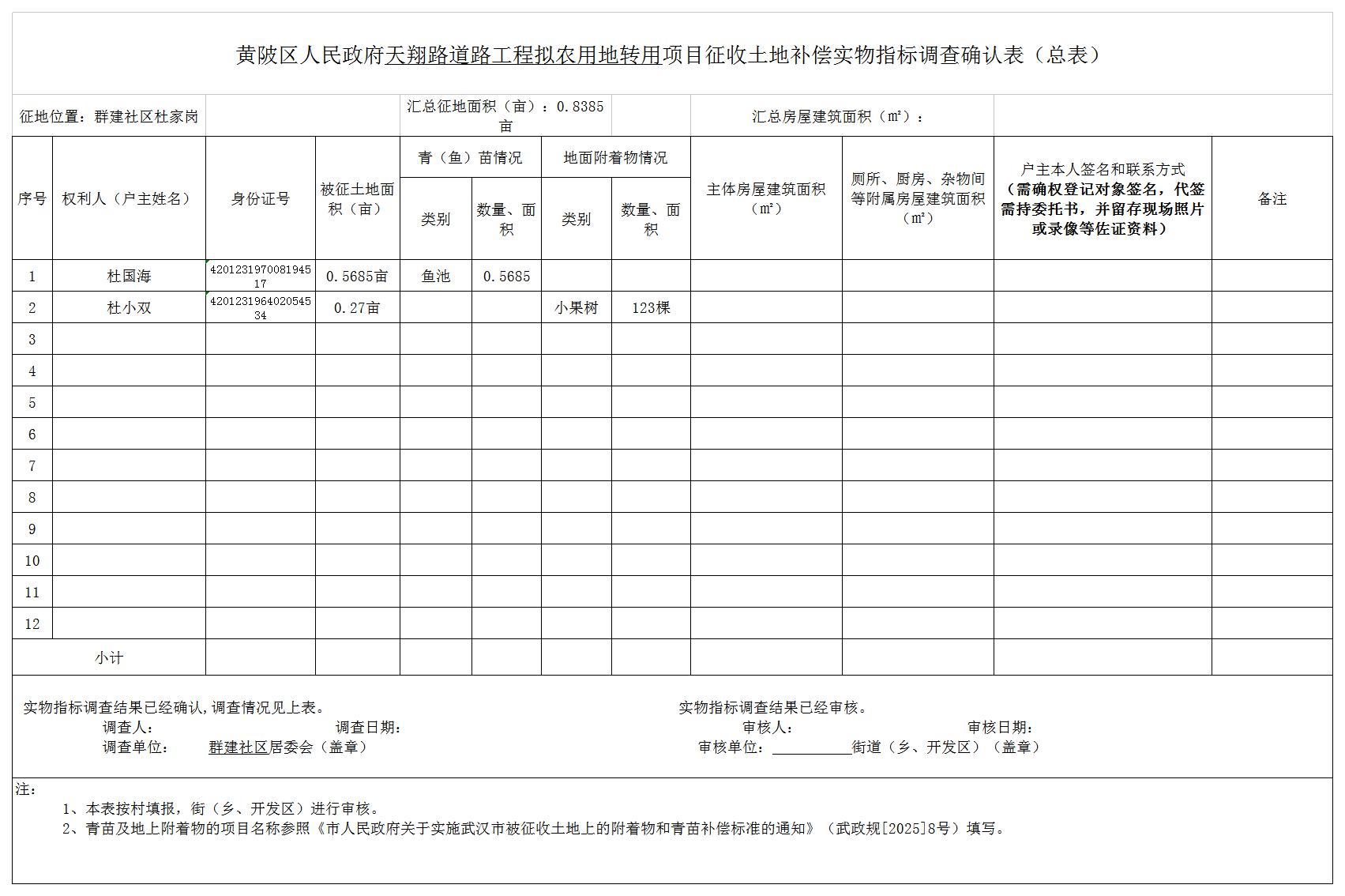 根据《中华人民共和国土地管理法》《中华人民共和国土地管理法实施条例》等法律法规和有关政策规定,结合土地征收预公告(陂土告字〔2025〕064-2号),黄陂区人民政府对拟征收土地的土地现状调查情况,被征地农民参加养老保险调查情况和社会稳定性风险评估情况,黄陂区人民政府组织了征地补偿安置方案,拟对横店街群建社区农民集体土地进行征收。现将天翔路(川龙大道至临空东街)道路工程建设用地征地补偿安置方案内容和有关事项公告如下: