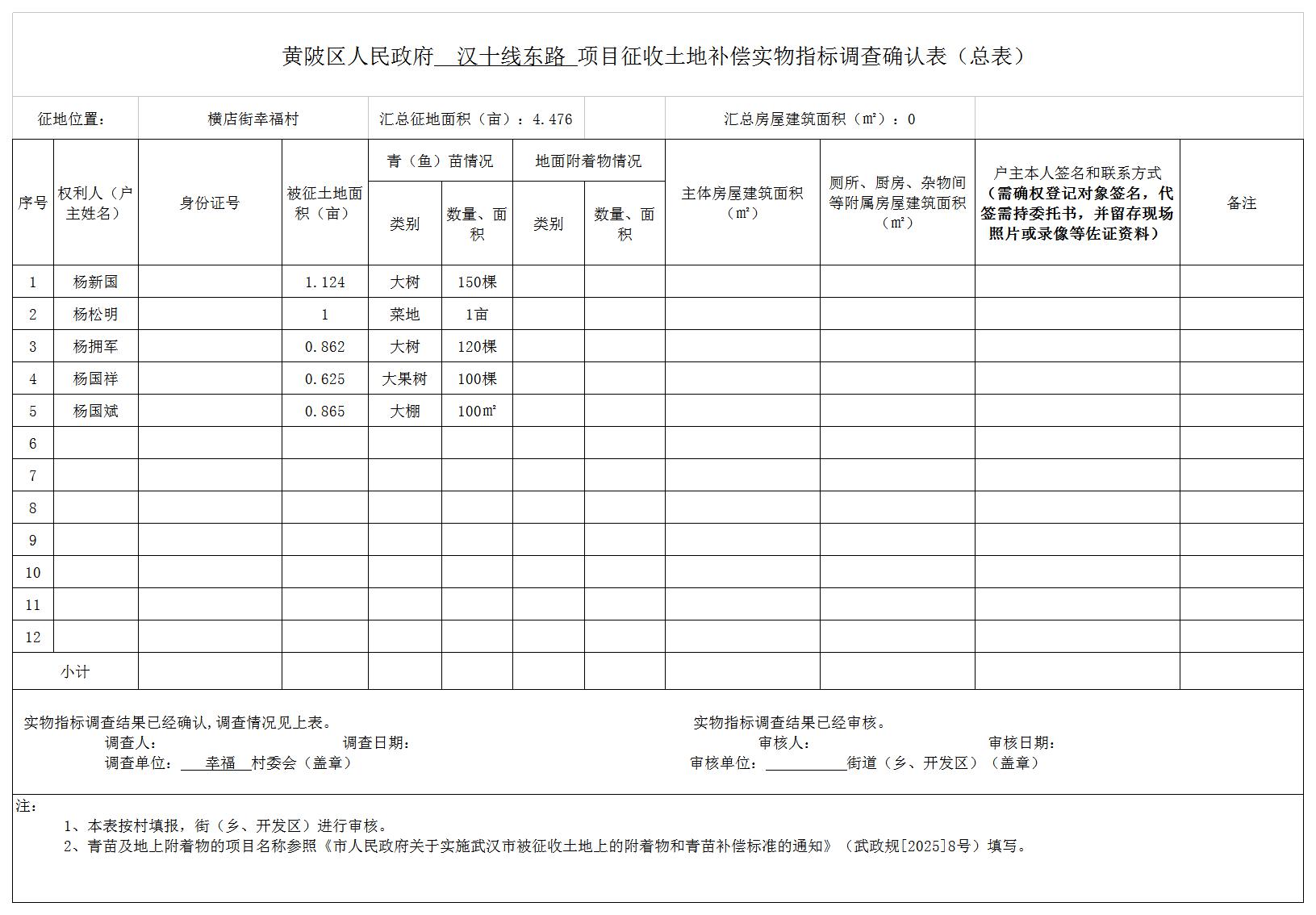 4. 本公告期限为30天,公告范围为横店街幸福村,并已在黄陂区人民政府门户网站公布,公布网址为https://www.huangpi.gov.cn/ywdt/gsgg。