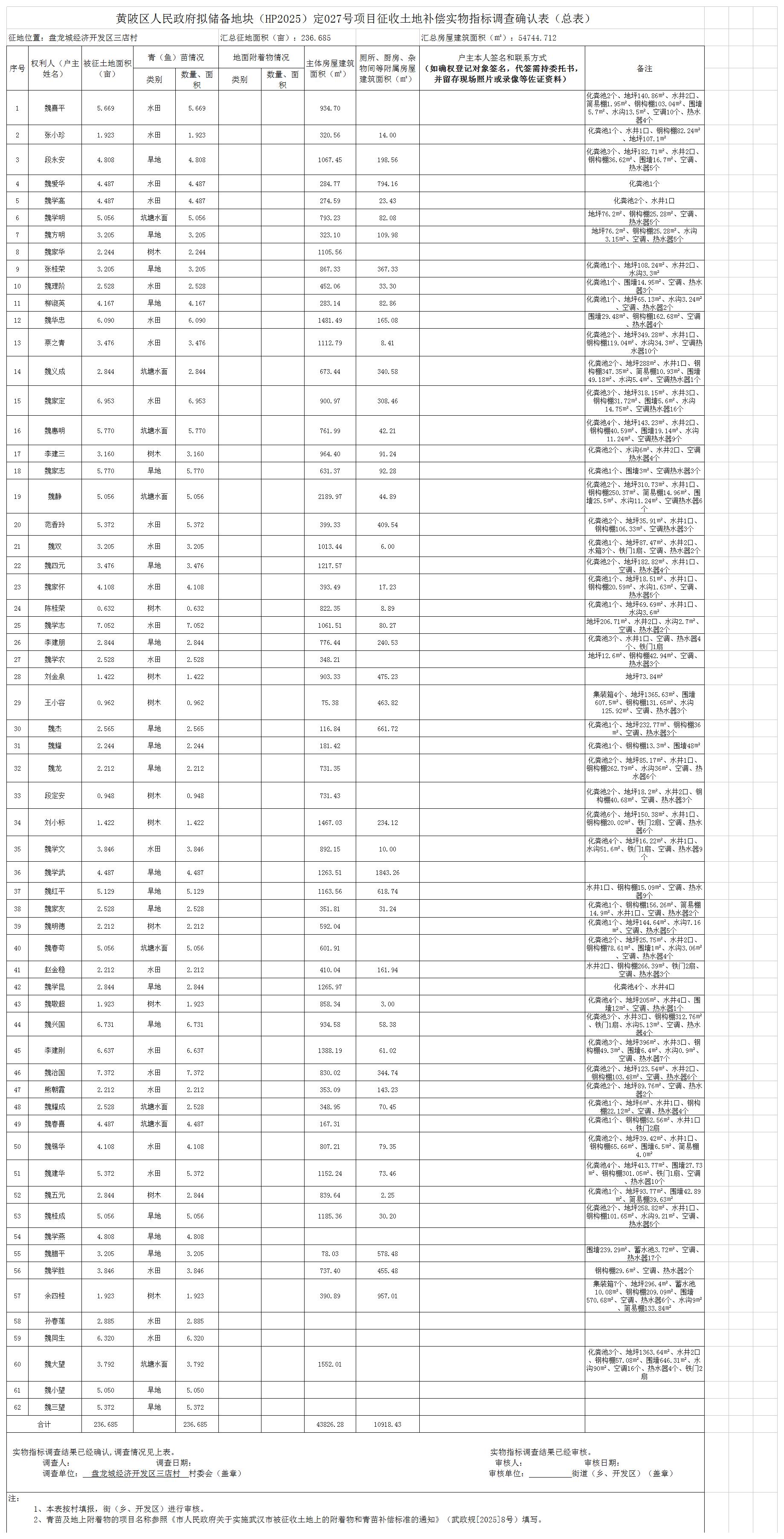 根据《中华人民共和国土地管理法》《中华人民共和国土地管理法实施条例》等法律法规和有关政策规定,结合土地征收预公告(陂土告字〔2025〕038-2号),黄陂区人民政府对拟征收土地的土地现状调查情况,被征地农民参加养老保险调查情况和社会稳定性风险评估情况,黄陂区人民政府组织了征地补偿安置方案,拟对盘龙城经济开发区三店村农民集体土地进行征收。现将黄陂区人民政府拟储备地块(HP2025定027号)建设用地征地补偿安置方案内容和有关事项公告如下: