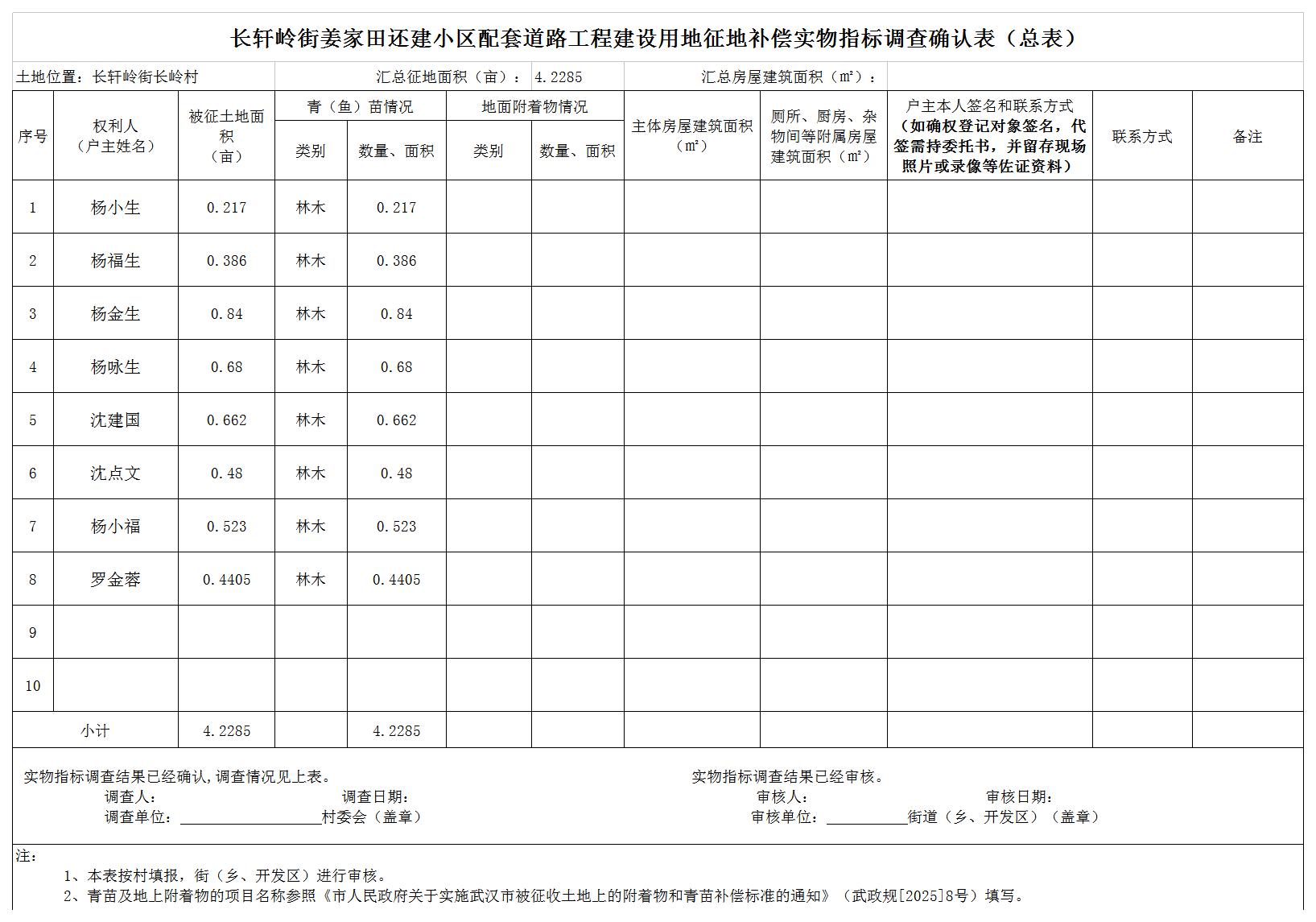 本次已对土地现状开展详尽调查,共涉及我区长轩岭街长岭村农民集体土地总面积0.2819公顷,其中农用地面积0.1776公顷(耕地0.1706公顷),建设用地0.1043公顷,未利用地/公顷。现状调查结果详见附件2。
