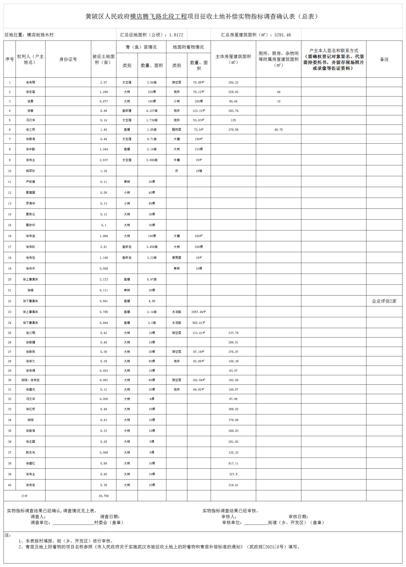 根据《中华人民共和国土地管理法》《中华人民共和国土地管理法实施条例》等法律法规和有关政策规定,结合土地征收预公告(陂土告字〔2025〕040-2号),黄陂区人民政府对拟征收土地的土地现状调查情况,被征地农民参加养老保险调查情况和社会稳定性风险评估情况,黄陂区人民政府组织了征地补偿安置方案,拟对横店街独木村农民集体土地进行征收。现将腾飞路北段工程建设用地征地补偿安置方案内容和有关事项公告如下: