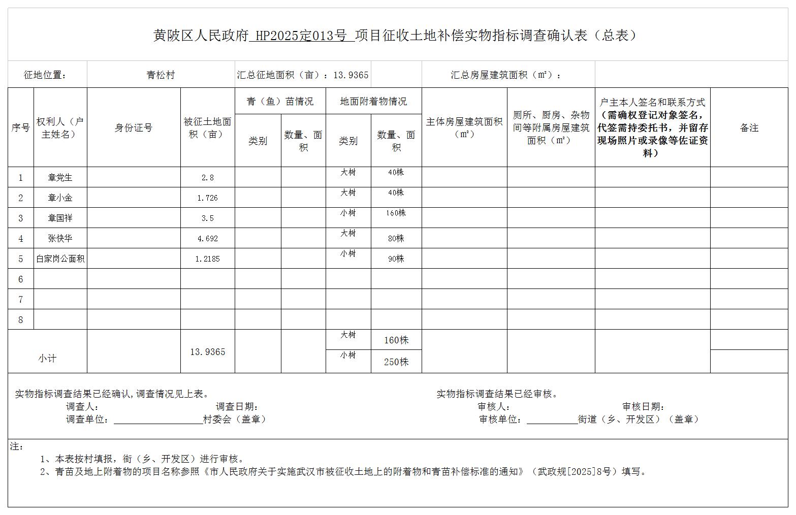 根据《中华人民共和国土地管理法》《中华人民共和国土地管理法实施条例》等法律法规和有关政策规定,结合土地征收预公告(陂土告字〔2026〕016-1号),黄陂区人民政府对拟征收土地的土地现状调查情况,被征地农民参加养老保险调查情况和社会稳定性风险评估情况,黄陂区人民政府组织了征地补偿安置方案,拟对横店街青松村农民集体土地进行征收。现将黄陂区人民政府拟储备地块(HP2025定013号)征地补偿安置方案内容和有关事项公告如下:
