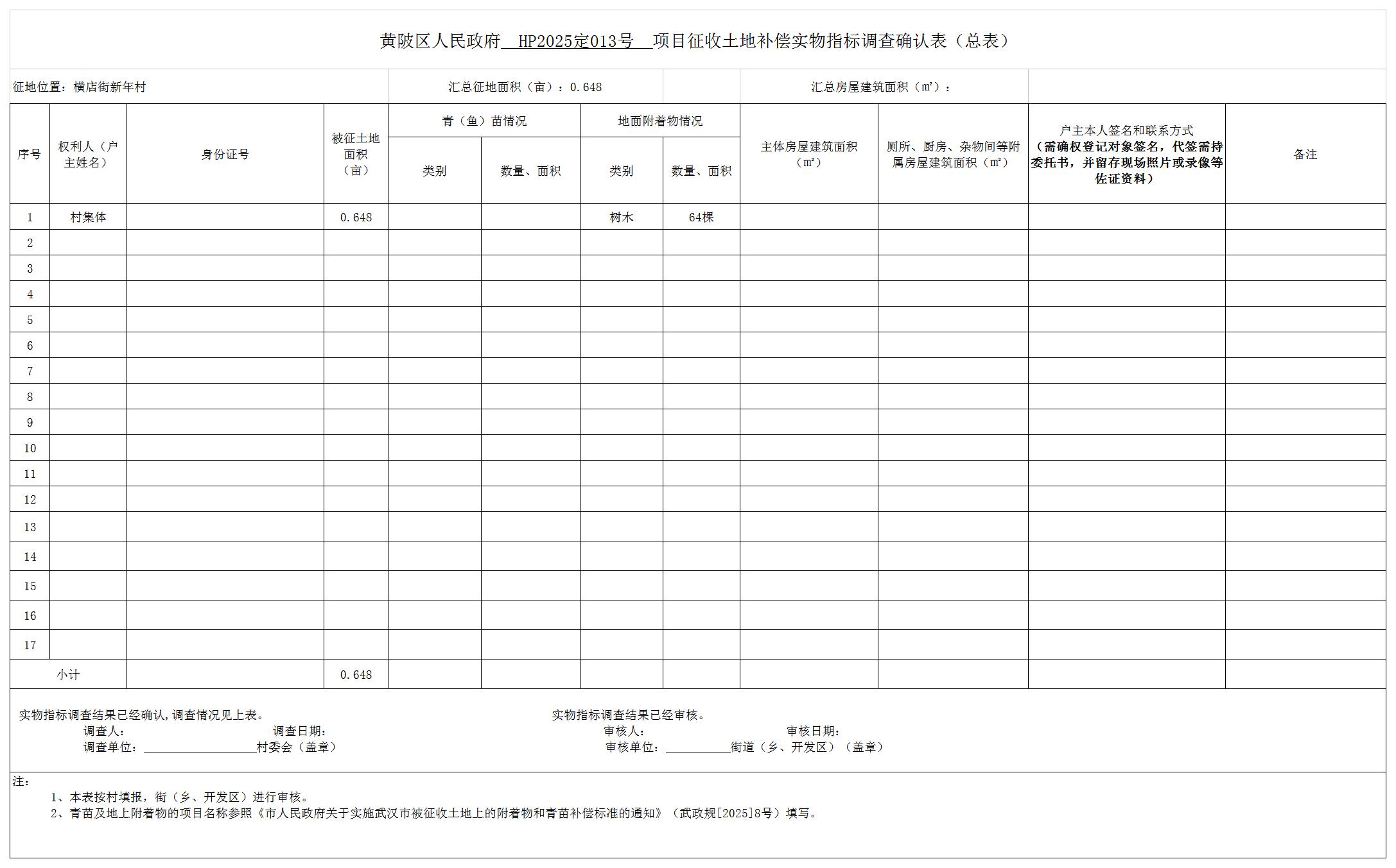 因实施黄陂区人民政府拟储备地块(HP2025定013号)项目建设等公共利益需要,黄陂区人民政府拟征收横店街新年村共计0.0432公顷,用地范围图详见附件1。土地用途为工业用地。